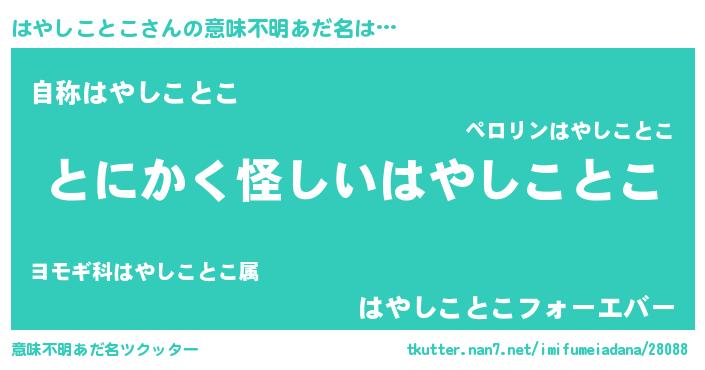 | ポケモン風あだ名 | 『メロハッヤ』『ヒハヤシコトコ』 |