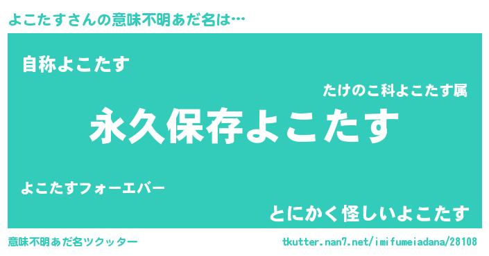 | 男性向けラノベタイトル風あだ名 | 『よこたすという概念が存在しない退屈な世界 』 |