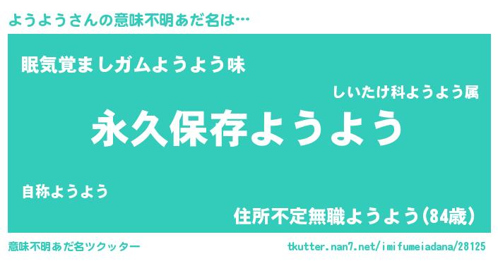 | 男性向けラノベタイトル風あだ名 | 『ようようという概念が存在しない退屈な世界 』 |