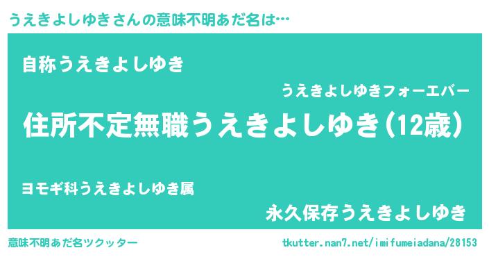 | ヘコむあだ名 | 『うえきよしゆき(笑)』『酢こんぶ』 |