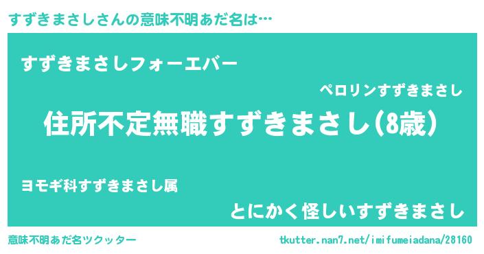 | 男性向けラノベタイトル風あだ名 | 『この素晴らしい世界にすずきまさしを!』 |