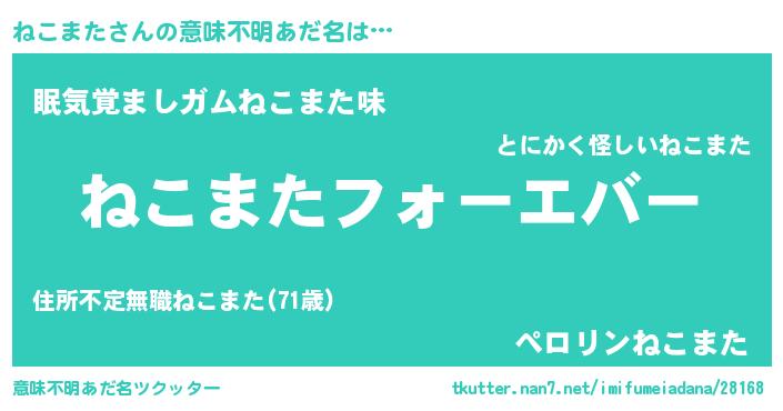 | 欧米人風あだ名 | 『ねこまたクリステル』 |