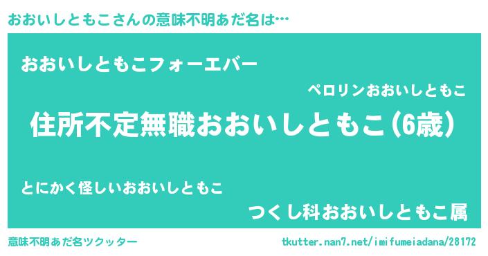 | 男性向けラノベタイトル風あだ名 | 『この素晴らしい世界におおいしともこを!』 |
