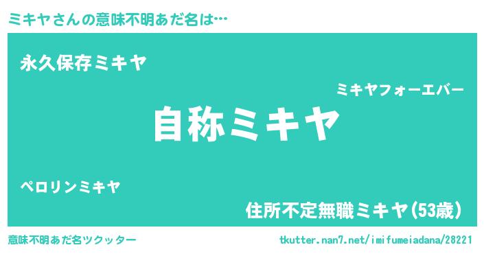 | 女子向けラノベタイトル風あだ名 | 『ミキヤアンティーク』『ミキヤの婚約者』 |