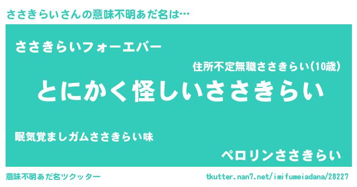 | 女子向けラノベタイトル風あだ名 | 『ささきらい様がみてる』 |