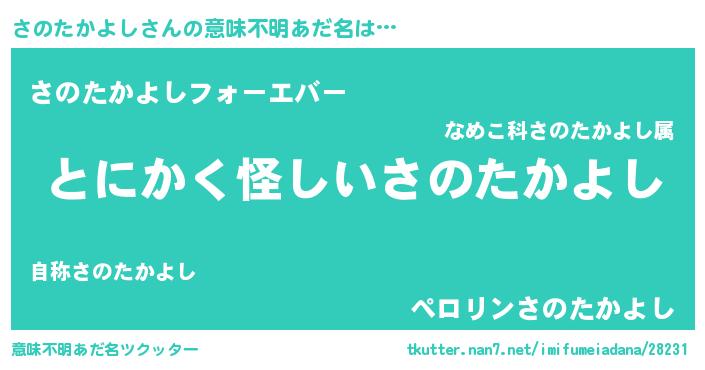 | 男性向けラノベタイトル風あだ名 | 『ダンジョンにさのたかよしを求めるのは間違っているだろうか』 |