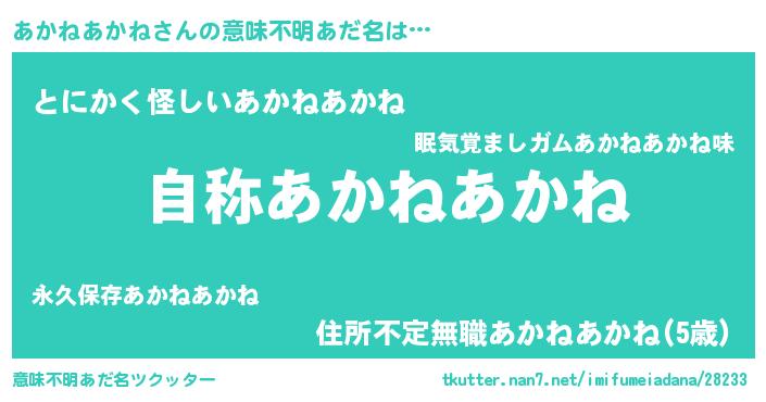 | 欧米人風あだ名 | 『ケンブリッジあかねあかね』 |