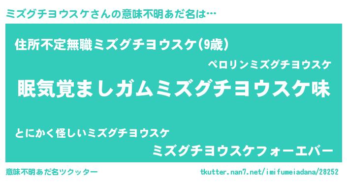 | 男性向けラノベタイトル風あだ名 | 『ノーゲーム・ノーミズグチヨウスケ』 |