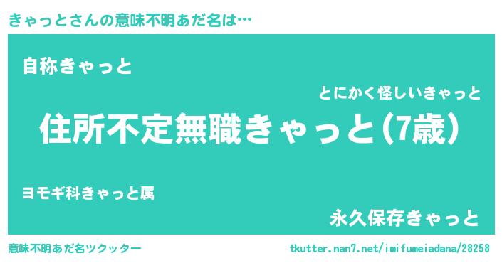 | 男性向けラノベタイトル風あだ名 | 『この素晴らしい世界にきゃっとを!』 |
