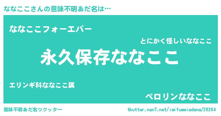 | ヒーロー風カッコイイあだ名 | 『ネオナナココ』『ウルトラななここマン』 |