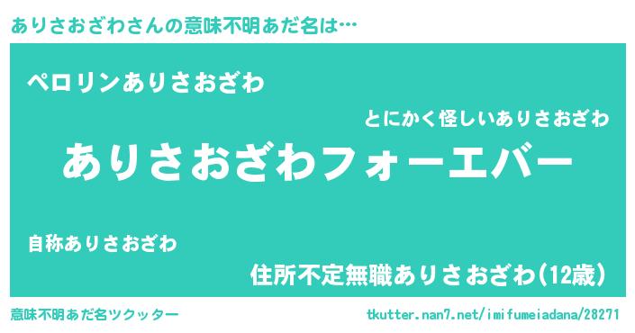 | 女子向けラノベタイトル風あだ名 | 『ありさおざわの雑貨屋さん』 |