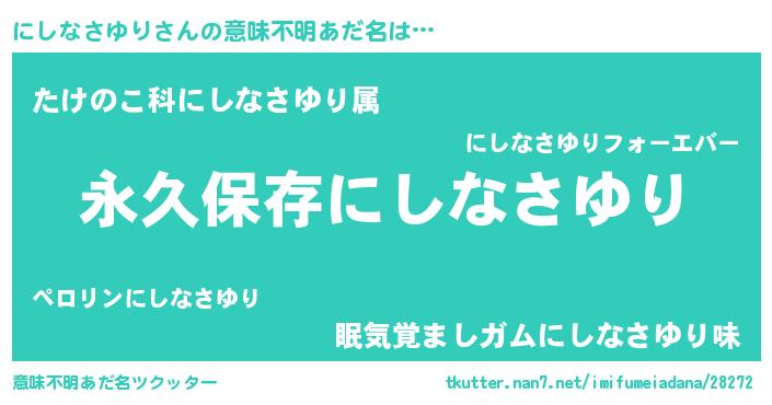 | 胡散臭い通販商品みたいなあだ名 | 『絶対に幸福をもたらす健康食品…その名も「にしなさゆり」』 |