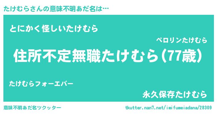 | ヘコむあだ名 | 『たけっちょ』『たけむら(笑)』 |