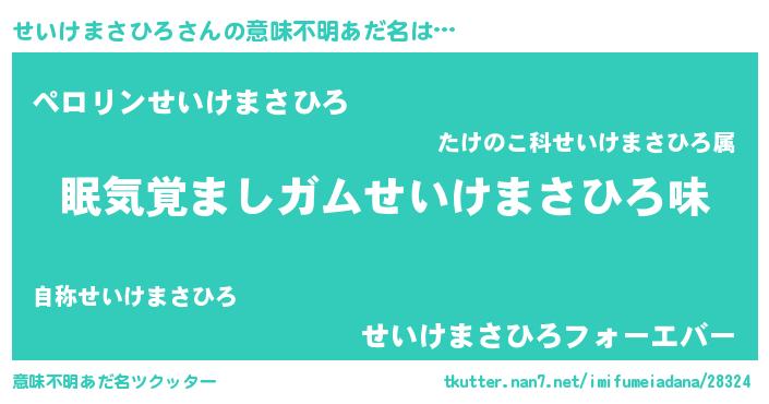 | 男性向けラノベタイトル風あだ名 | 『おまえをオタクにしてやるから、俺をせいけまさひろにしてくれ! 』 |