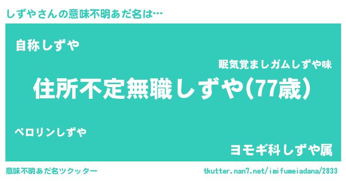 | ヒーロー風カッコイイあだ名 | 『仮面シズダー』『サイバー戦士シズヤ』 |