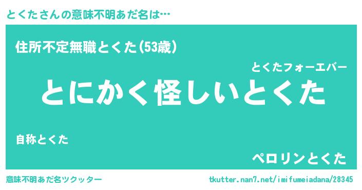 | ヒーロー風カッコイイあだ名 | 『暗黒騎士トク』『仮面トクダー』 |