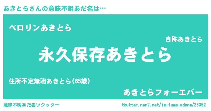 | ヘコむあだ名 | 『あきとら(小並感)』『あきっふぃ~』 |