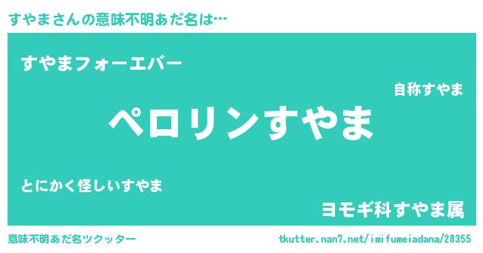 | ファンタジー風あだ名 | 『スヤフェル』『エターナルスヤマー』 |