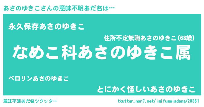 | 料理風あだ名 | 『あさのゆきこごはん』 |