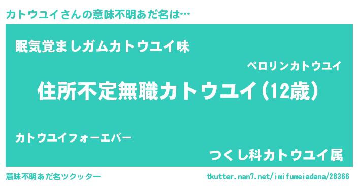 | 男性向けラノベタイトル風あだ名 | 『この素晴らしい世界にカトウユイを!』 |