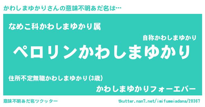 | 男性向けラノベタイトル風あだ名 | 『かわしまゆかりの憂鬱』 |