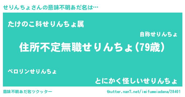 | 胡散臭い通販商品みたいなあだ名 | 『あなたにだけ特別に提供する世界で10本だけ現存している希少なブランデー…その名も「せりんちょ」』 |