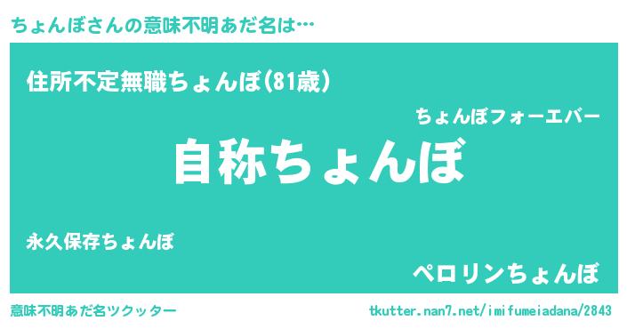 | 男性向けラノベタイトル風あだ名 | 『Re:ちょんぼから始める異世界生活』 |