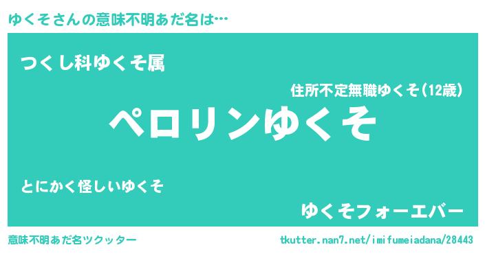 | 男性向けラノベタイトル風あだ名 | 『ゆくそに滅ぼされるだけの簡単なお仕事です』 |