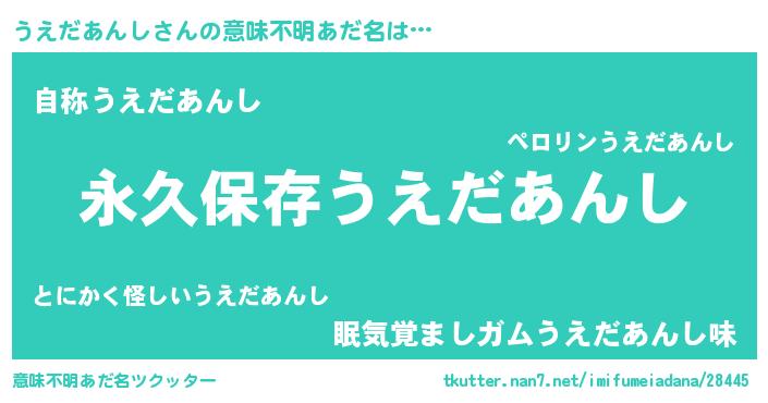 | 胡散臭い通販商品みたいなあだ名 | 『絶対に幸福をもたらす健康食品…その名も「うえだあんし」』 |