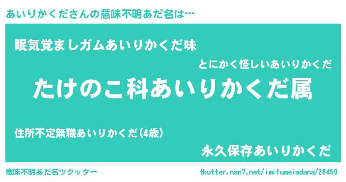 | 胡散臭い通販商品みたいなあだ名 | 『お金では代えられないイリジウム磁石…その名も「あいりかくだ」』 |