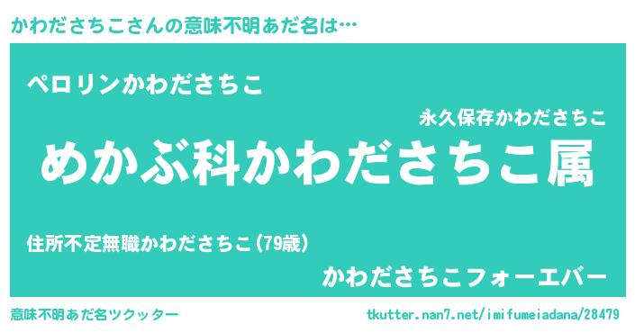 | 男性向けラノベタイトル風あだ名 | 『カワダサチコスレイヤー』 |
