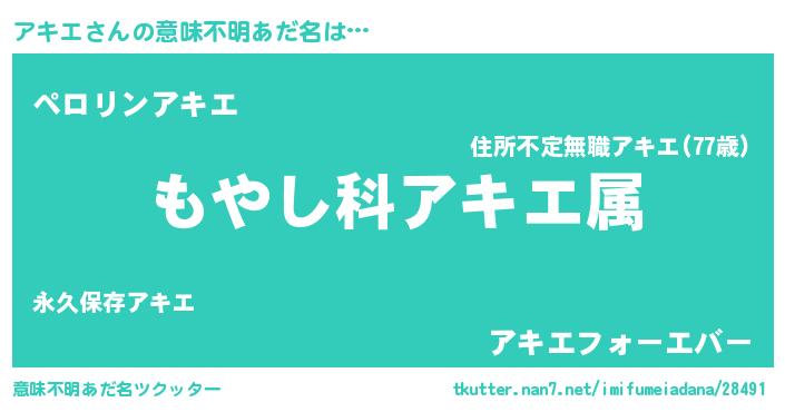 | ヘコむあだ名 | 『アキにゅー』『レバニラ』 |