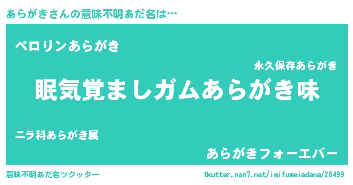 | 欧米人風あだ名 | 『ダニエルあらがき』『マイケルあらがき』 |