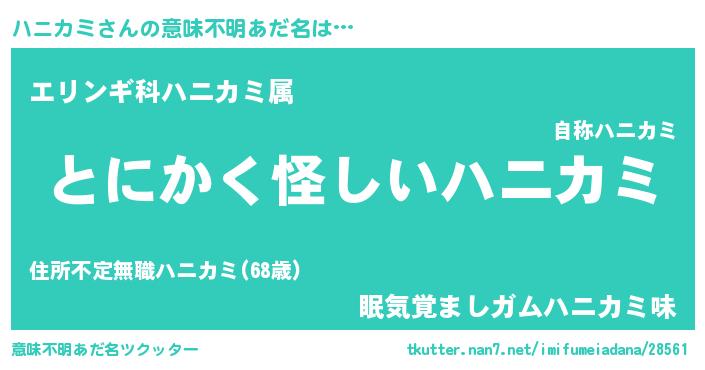 | ヒーロー風カッコイイあだ名 | 『幻影騎士ハニ』『正義の使者ハニカミ』 |