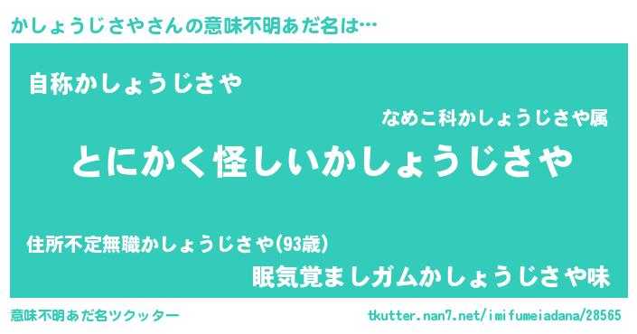 | 男性向けラノベタイトル風あだ名 | 『かしょうじさやの嫁は女の子じゃないと思った?』 |
