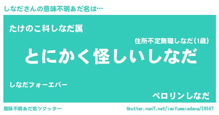 | 男性向けラノベタイトル風あだ名 | 『しなだの嫁は女の子じゃないと思った?』 |