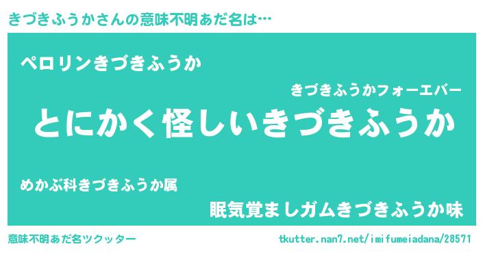 | 男性向けラノベタイトル風あだ名 | 『きづきふうかの嫁は女の子じゃないと思った?』 |