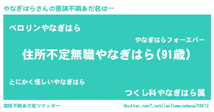 | 男性向けラノベタイトル風あだ名 | 『うちのやなぎはらが世界を掌握している!』 |