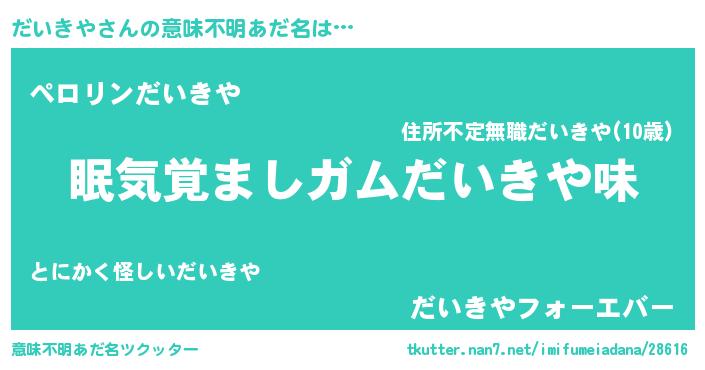| ヘコむあだ名 | 『だいにゅー』『酢こんぶ』『だいお』 |