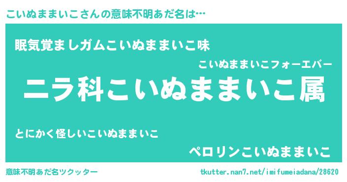 | 男性向けラノベタイトル風あだ名 | 『こいぬままいこに滅ぼされるだけの簡単なお仕事です』 |