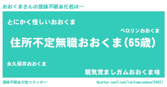 | 男性向けラノベタイトル風あだ名 | 『緋弾のオオクマ』『魔弾の王とおおくま』 |