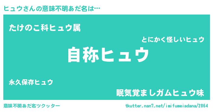 | ヒーロー風カッコイイあだ名 | 『究極戦士ヒュウ』『愛の使者ヒュウ』 |