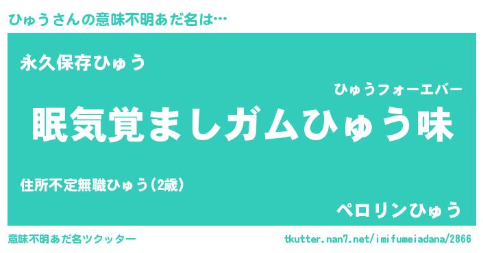 | ヘコむあだ名 | 『ひゅう(震え声)』『ひゅにゅー』 |