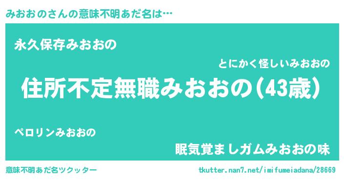 | ヘコむあだ名 | 『みおおの(笑)』『みおっぺ』 |