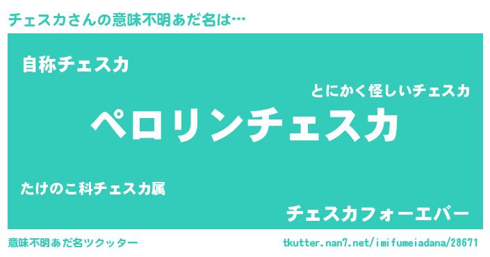 | 男性向けラノベタイトル風あだ名 | 『チェスカアートオンライン』 |