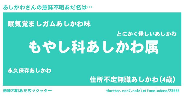 | ヒーロー風カッコイイあだ名 | 『慈愛の使者あしかわ』『仮面アシダー』 |