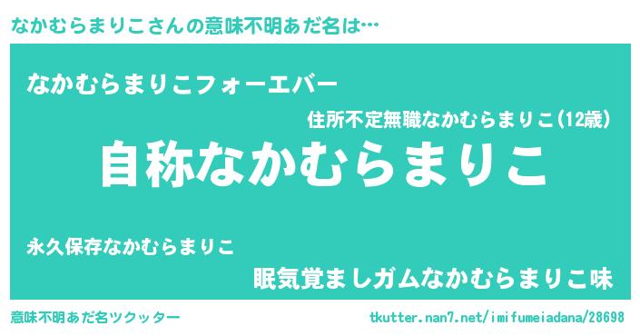 | 男性向けラノベタイトル風あだ名 | 『Re:なかむらまりこから始める異世界生活』 |