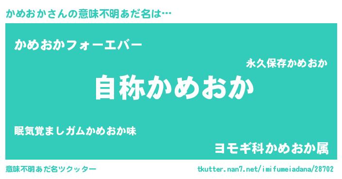 | 女子向けラノベタイトル風あだ名 | 『闇のかめおか』『かめおかの雑貨屋さん』 |