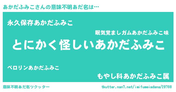 | 女子向けラノベタイトル風あだ名 | 『あかだふみこ様がみてる』 |