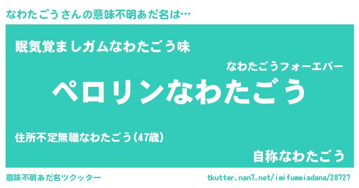 | 男性向けラノベタイトル風あだ名 | 『なわたごうに滅ぼされるだけの簡単なお仕事です』 |